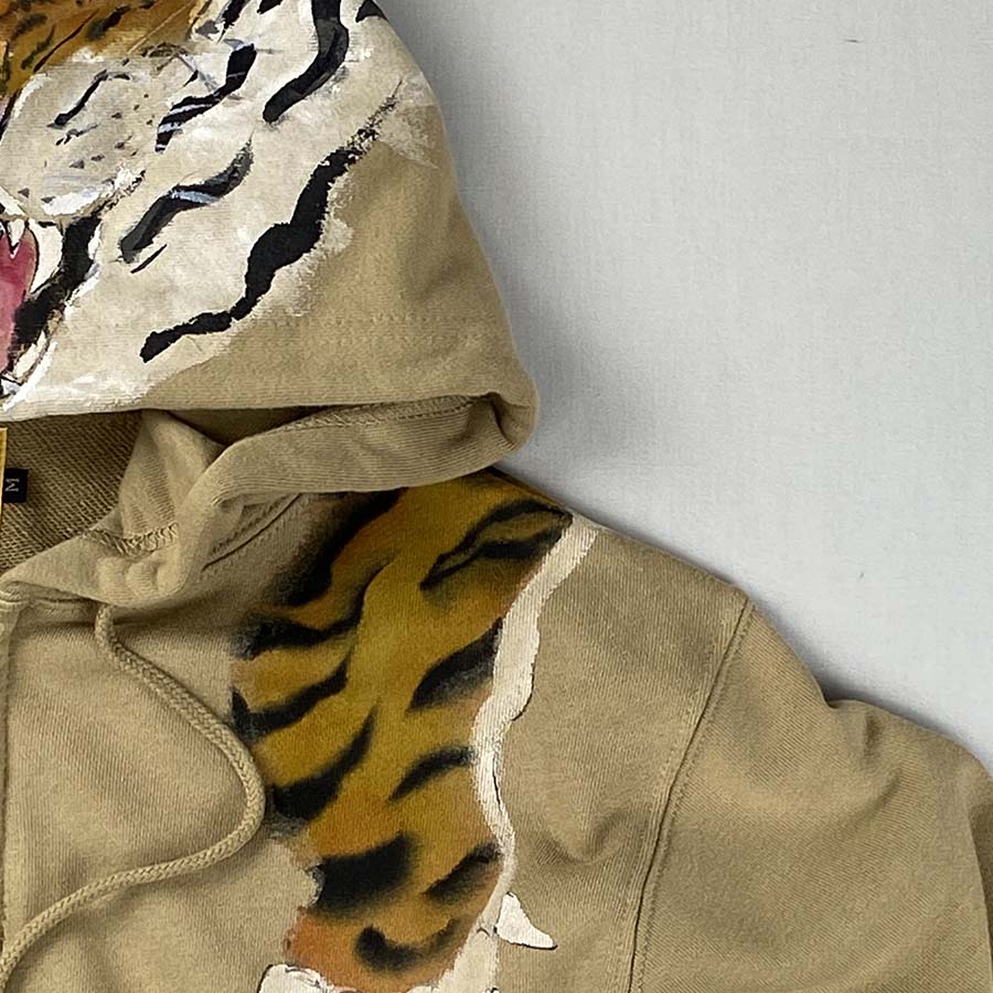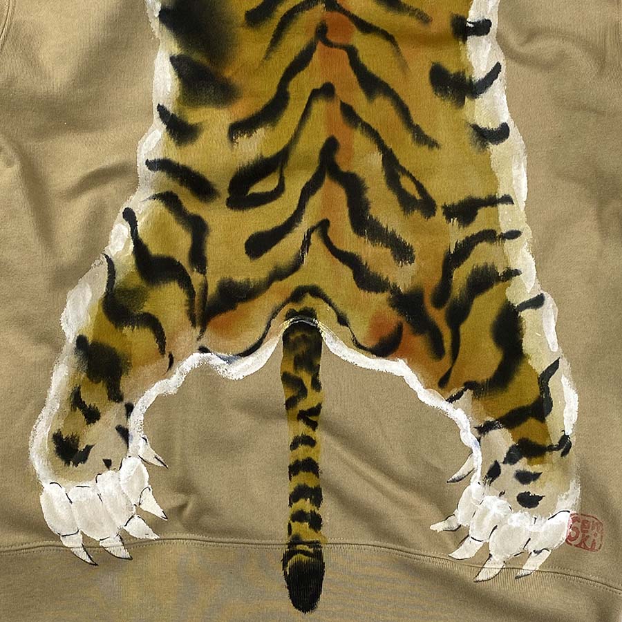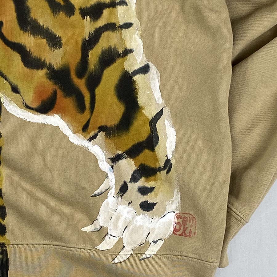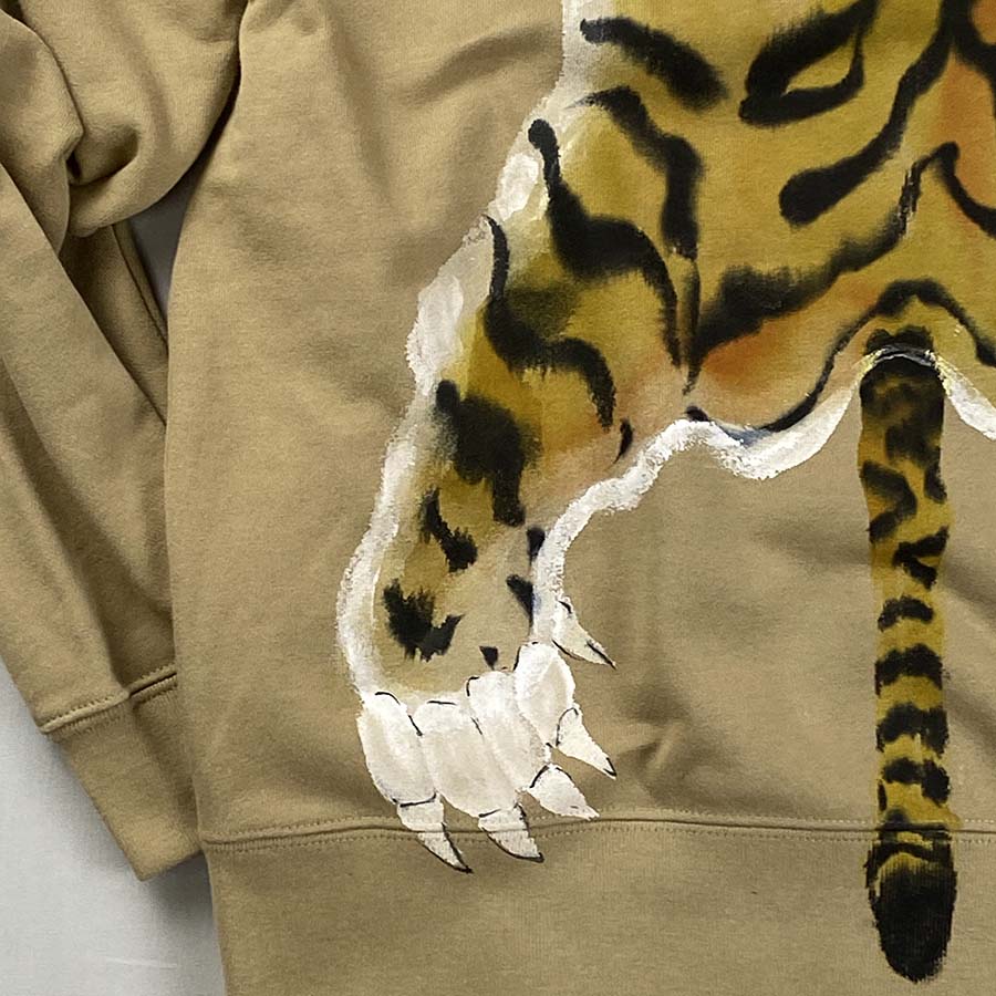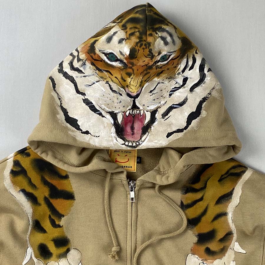 フード部分には顔、後ろ身全体に虎の背中が描かれ、虎を背負っている様な最高に面白い一品が出来上がりました。