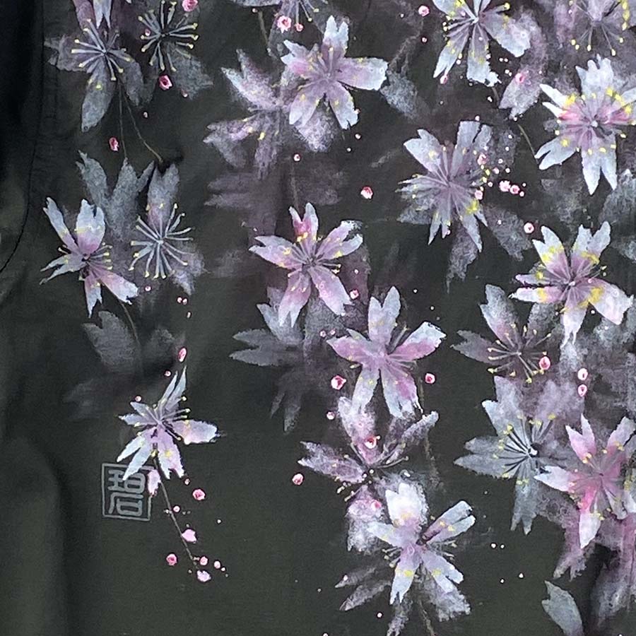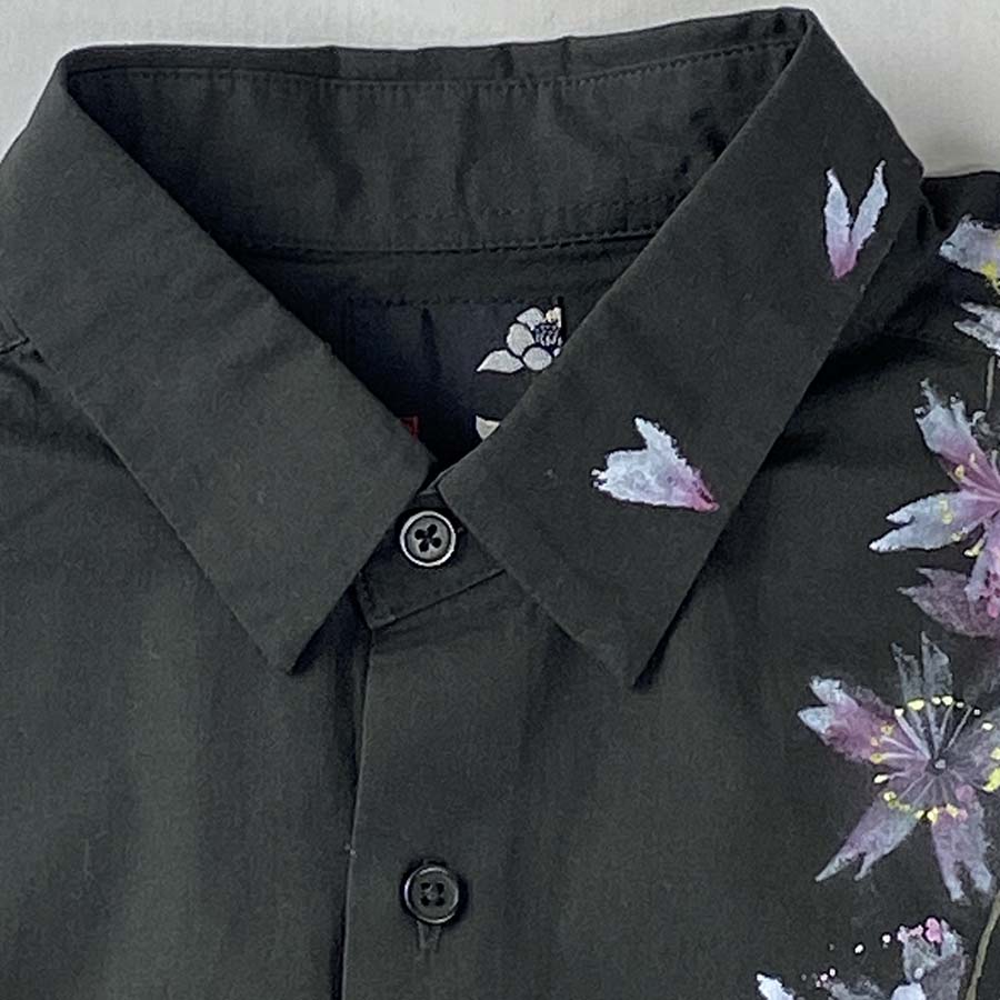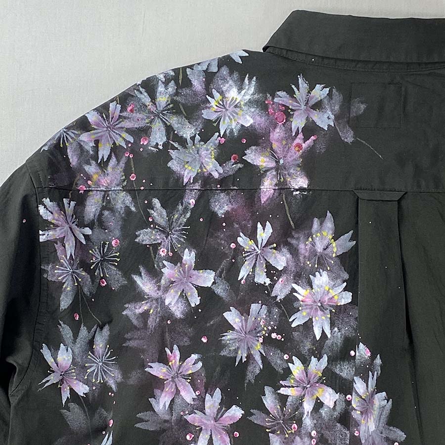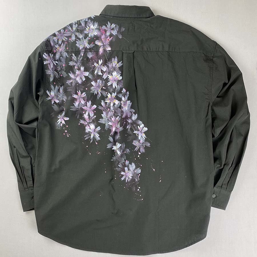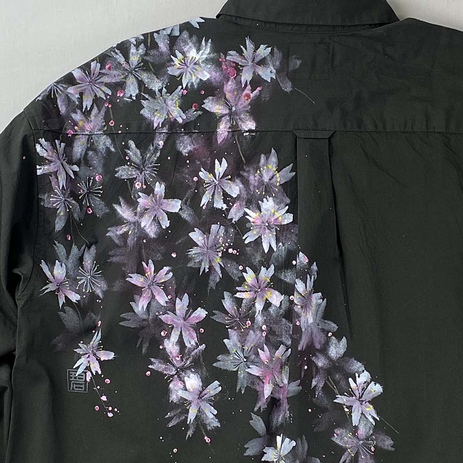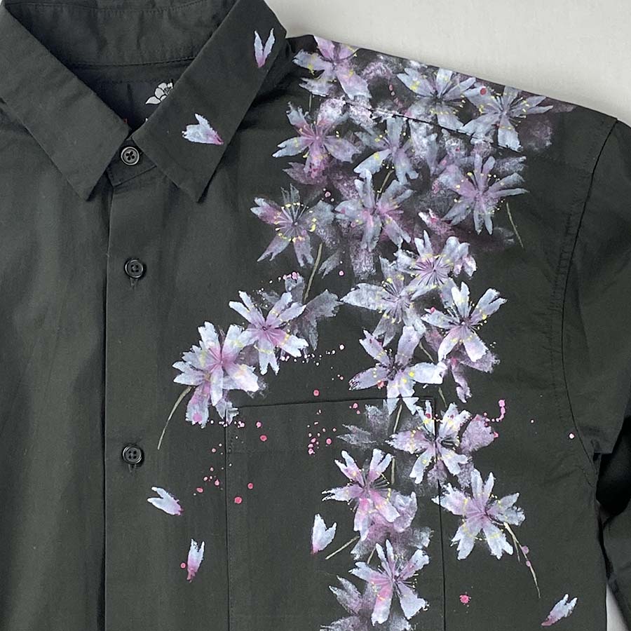 おぼろげに浮かび上がる夜桜を見ているようなシャツです。