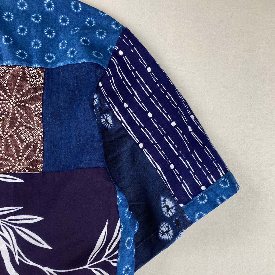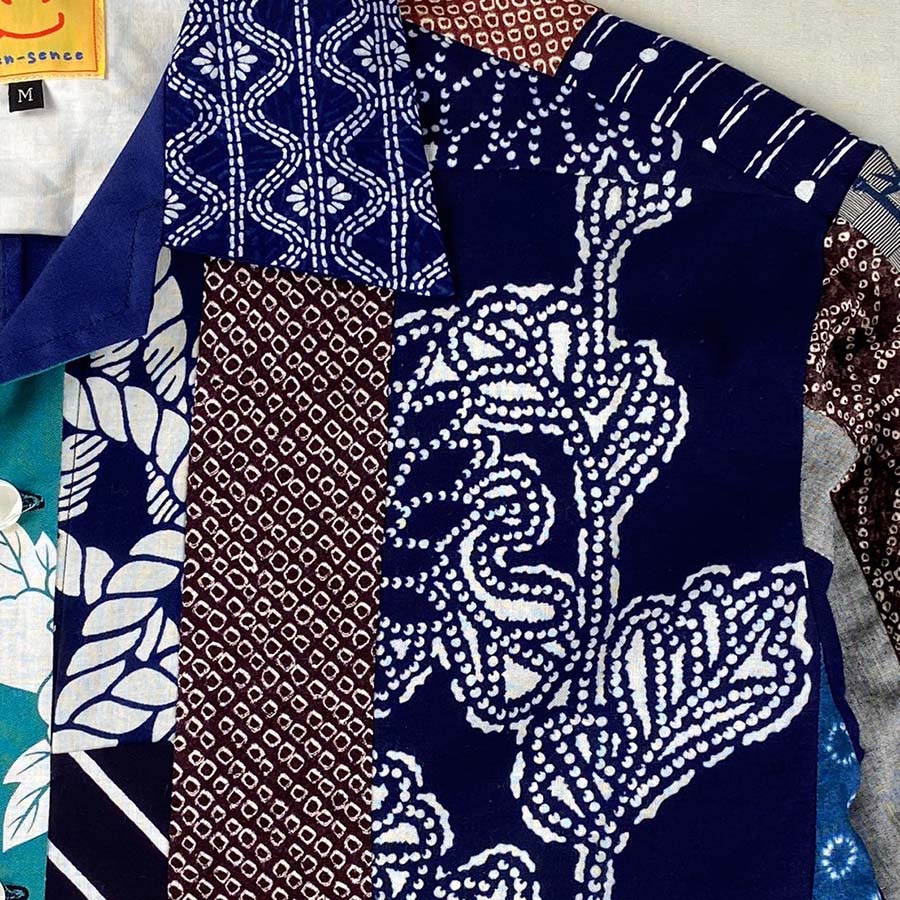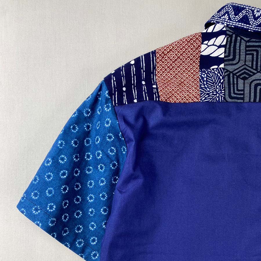 様々な浴衣生地をパッチワークしてシャツに仕上げました。