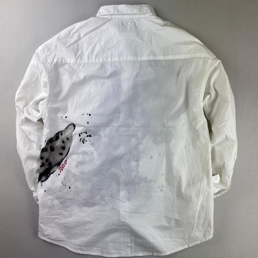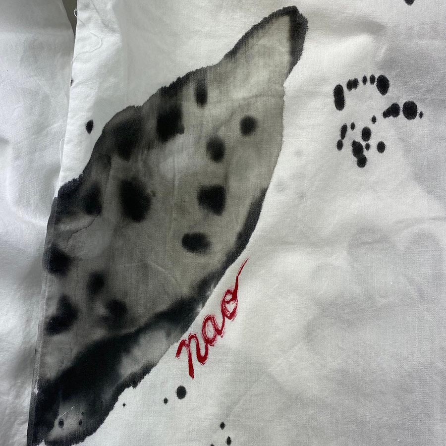ぷにぷにとした皮膚の質感を墨濃淡のにじみで表現しました。