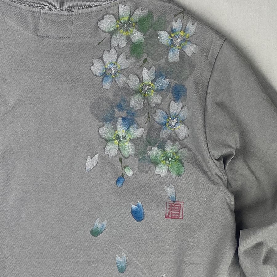 長袖Tシャツの色に合わせてはんなりとした色の味わいで表現しています。