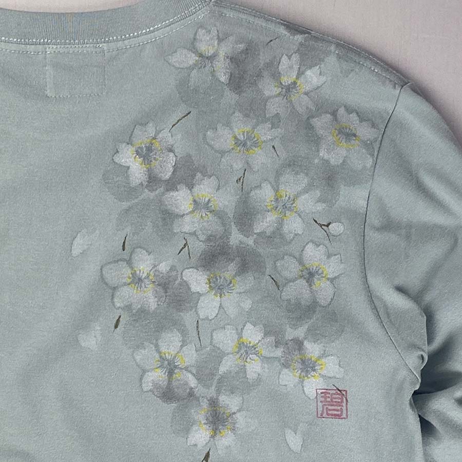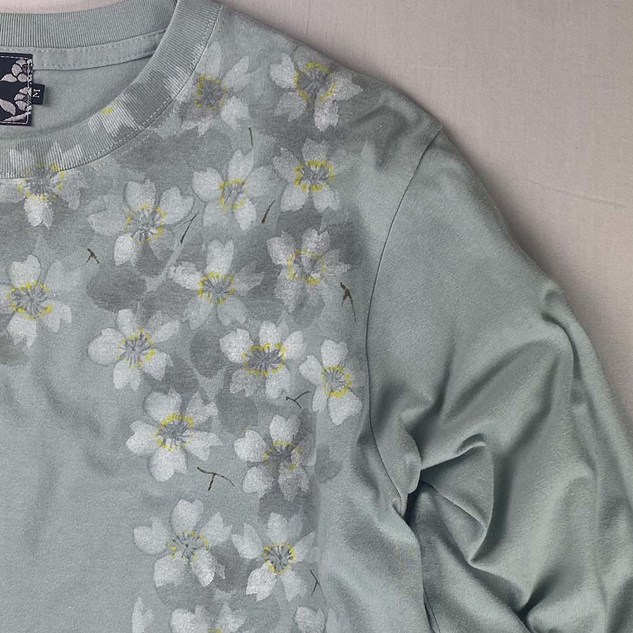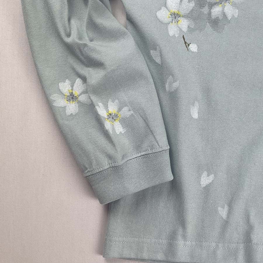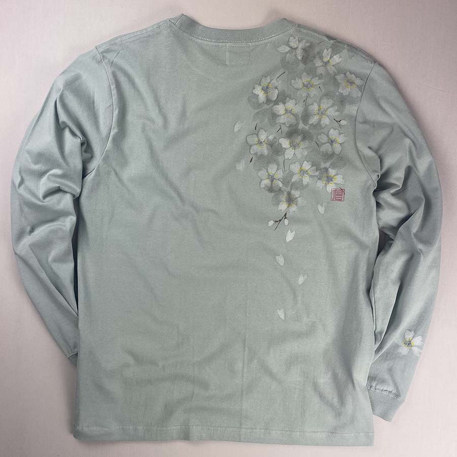 満開の桜 長袖Tシャツ スモーキーグリーン